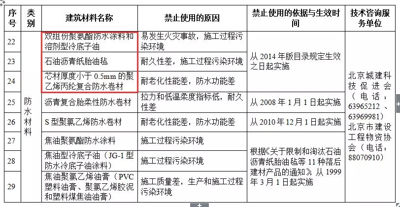 【政策速递】《北京市推广、限制和禁止使用建筑材料目录(2014年版)》发布,1种防水卷材被限制使用,8种防水材料被禁止使用