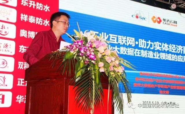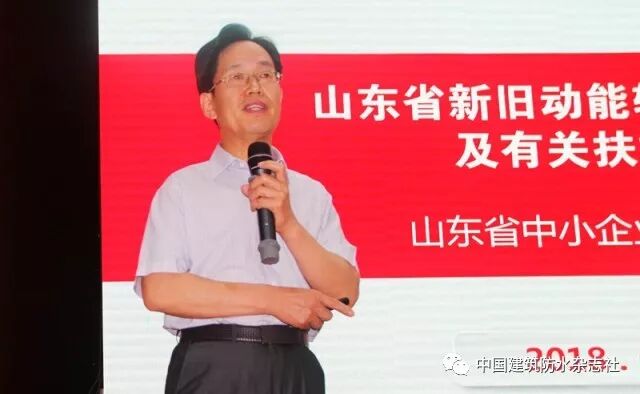 围绕新旧动能转换这一主题,会议特别邀请了领导、专家对防水产业发展环境及未来发展趋势作报告。张登方处长就《山东省新旧动能转换重大工程实施规划》出台的背景、目的意义和主要内容以及扶持中小企业发展的政策作了报告;中国航天科工集团航天云网科技有限公司首席市场官杨文峰在会上作了《工业互联网推动防水产业新旧动能转换》的演讲;沈春林主任作了题为“防水材料现状与发展+新型可外露系列防水材料”的报告。
