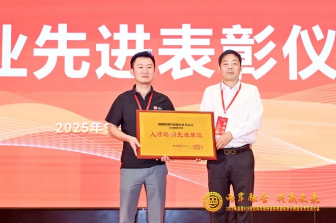 在行业先进表彰仪式上,瞿培华、李文芳为华鸿(福建)建筑科技有限公司及其创始人陈虬生颁发了“益胶泥品类质量标杆企业”、“益胶泥品类开拓者”牌匾;李文芳向福建极缮科技股份有限公司颁发了“人才培训先进单位”牌匾。