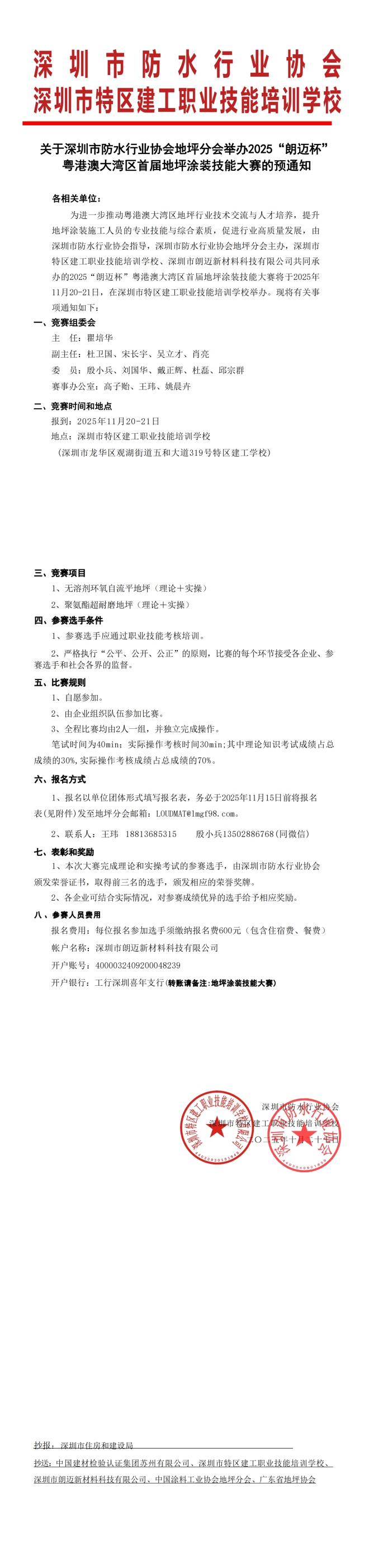 关于深圳市防水行业协会地坪分会举办2025“朗迈杯”粤港澳大湾区首届地坪涂装技能大赛的预通知