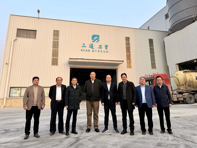 德成集团主营商业地产和工业地产,兼营建筑新材料产业。德成新材料阳逻工业园和麻城工业园,主要是生产防水涂料、防水砂浆、保温装饰一体板、砂粉腻子和脱硫石膏产品和服务的新材料基地,调研团一行参观了展厅、各类产品车间及实验室。