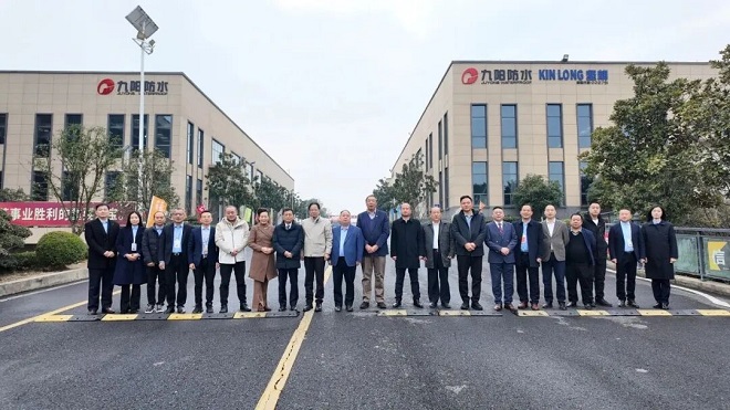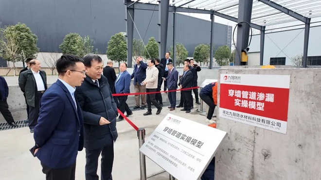 应九阳防水董事长刘启军邀请,中国建筑防水协会会长胡希宝、专家委员会主任委员朱冬青、资深副会长羡永彪、资深副会长瞿培华、副会长徐小波、副会长孙军忠、副会长卫向阳、加拿大多伦多商会会长周凡、荆门科顺新材料有限公司总经理章国政一行到访九阳防水调研交流,共同见证九阳防水修缮培训基地启动仪式,九阳防水董事长刘启军携高管团队热情接待,双方围绕行业高质量发展展开交流座谈。