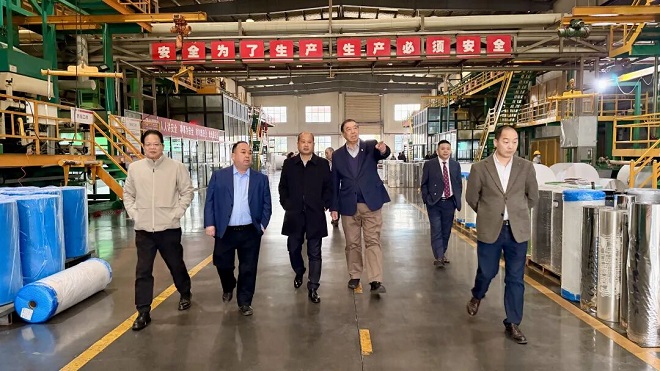 在张维总经理陪同下,调研团一行还走访调研了湖北平安薄膜材料有限公司,平安薄膜主要生产防水卷材用隔离膜和热熔膜,总经理张飞引导一行参观了工厂和工艺,在交流中调研团一行鼓励平安薄膜在做好防水卷材产业链的基础上,开发新领域,探索成为建筑系统解决方案提供商。