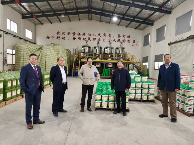 应深圳新黑豹董事长王荣柱邀请,调研团一行走访调研深圳市新黑豹建材有限公司位于湖北宜昌的产业基地——宜昌市黑豹建筑防水材料有限公司,并与王荣柱董事长进行了交流。调研团一行对新黑豹作为JS涂料知名品牌在新型建材领域的创新成果和市场前景表示赞赏。