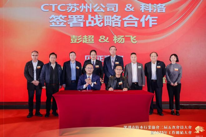 会上,CTC苏州公司与科洛自防水举行了战略合作协议签约仪式。彭超董事长、杨飞总经理代表双方签约,朱冬青、羡永彪、瞿培华、巢文革等见证。
