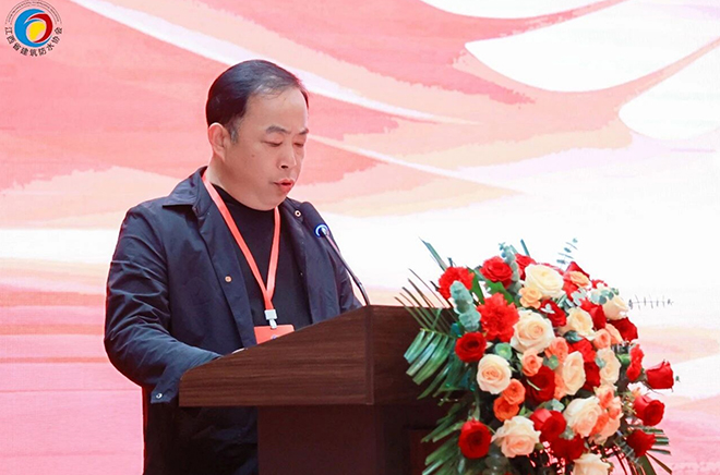 领导致辞环节,江西省住建厅行业综合党委副书记、三级调研员廖能生致辞,祝贺新一届领导班子组建,肯定历届协会在党建引领、政策落实、技术推广等方面取得的工作成效,指出行业既面临转型压力,也迎来发展机遇,希望协会后续从坚守政治引领、强化服务赋能、筑牢安全防线三个方面继续发挥优势,为协会工作和行业发展奠定基础。