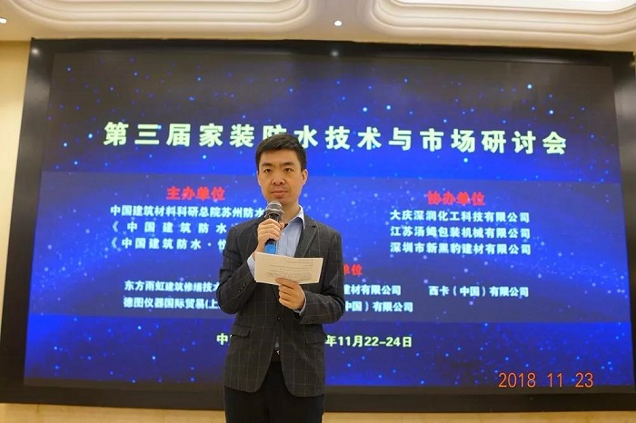 2018年11月23日,由中国建筑材料科研总院苏州防水研究院、《中国建筑防水》杂志社、《中国建筑防水•悦居》编委会主办,苏州悦居防水科技有限公司承办,深润化工、汤姆包装、新黑豹协办,东方雨虹建筑修缮、卓宝涂无忧、西卡、德图仪器、瓦克化学支持的“第三届家装防水技术与市场研讨会”在江苏苏州召开。