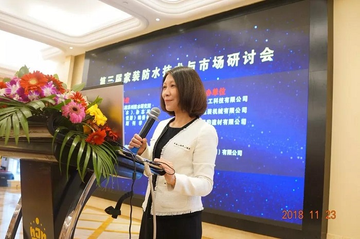 保障防水工程质量一直是行业关注的热点。民用建筑防水领域的知名企业在开发新材料、研究新技术、保障施工质量等方面进行了积极探索,积累了丰富经验。会上,大庆深润化工科技有限公司总经理解飞作了《丁基胶带在建筑防水工程中的应用》的报告。西卡(中国)有限公司产品经理相瑞作了《筑安全、强基面、增效率、防空鼓——西卡创新3组份防水的家装应用分析》的报告。深圳市新黑豹建材有限公司总经理王俊作了《民用建筑防水工程质量保障及耐久性研究》的报告,分享了民用建筑防水施工工艺要点与质量控制措施。卓宝涂无忧建材有限公司董事长李学虎作了《精装时代家装防水市场》的报告,基于翻新及维修市场的特点,介绍了有针对性满足客户需求、研发出高效的维修系列产品的重要性,并分享了涂无忧如何从材料零售商向专业服务商成功转变的经验。