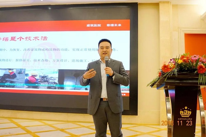 渗漏修缮这一蓝海市场很吸引人,然而房屋渗漏水维修是一项复杂而又困难的综合性工作,其治理技术与施工的复杂性远超过新工程。本次会议邀请了防水行业的龙头企业东方雨虹分享其在建筑渗漏修缮领域积累的丰富经验。东方雨虹建筑修缮技术有限公司常务副总经理窦吉培作了《建筑修缮技术体系之渗漏修复技术》的报告,介绍了东方雨虹建筑修缮的系统解决方案与技术支撑体系。德图仪器国际贸易(上海)有限公司市场经理李婷婷作了《红外热像仪与建筑渗漏》,分享了如何利用现代渗漏检测技术,借助高科技智能仪器,查找渗漏,助力防水测漏的准确性。