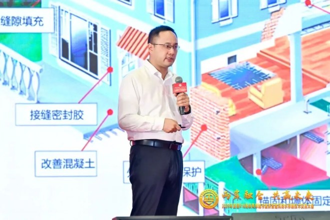 广州市台实防水补强有限公司副总经理王春晓,作了《台实:市政修缮领军品牌的前世今生》的主题报告,分享了始于1989年的台实建筑修缮(包括防水堵漏、补强加固等)的悠久历史、核心技术、系统优势和专家团队;并通过大量案列,介绍了台实修缮的系统解决方案。