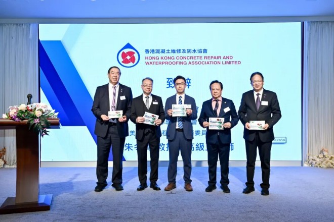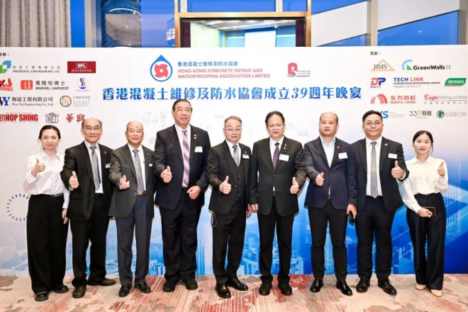2025年9月30日,应香港混凝土维修及防水协会黄润明会长的邀请,中国建筑防水协会秘书长朱冬青,中国建筑防水协会副会长、深圳市防水行业协会会长瞿培华、武汉德成控股集团董事长徐小波一行出席“香港混凝土维修及防水协会成立39周年活动”。