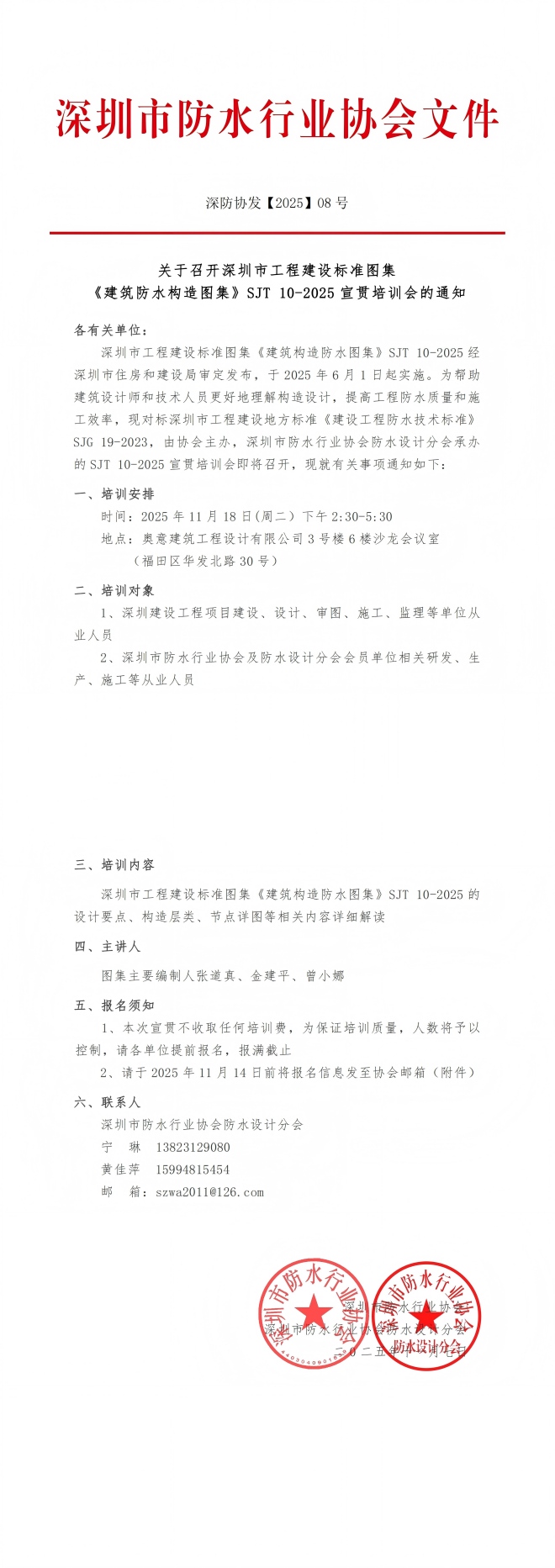 关于召开深圳市工程建设标准图集《建筑防水构造图集》SJT 10-2025宣贯培训会的通知