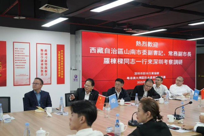 深圳市防水行业协会会长、粤港澳大湾区防水服务平台执委联席会议主席瞿培华教授致欢迎词。他特别欢迎山南市委副书记罗栋梁同志一行,称其深圳行程紧凑有多场座谈会,今日专程到访深圳防水协会考察调研。瞿会长热情洋溢表达了曾多次进藏的激动心情,现场提及参加本次座谈会的多位朋友都是与西藏有渊源的,如援藏干部等;最后他希望通过今天座谈会让大家更加了解美丽的西藏,有机会为西藏的建设高质量发展注入新动能。