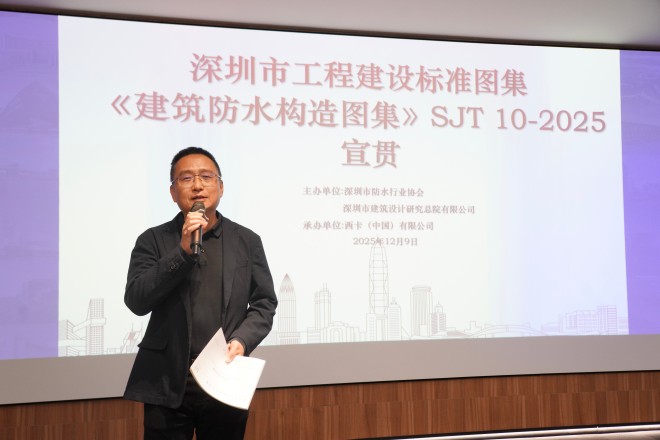 2025年12月9日,由深圳市防水行业协会牵头,联合深圳市建筑设计研究总院(简称“深总院”)主办、西卡(中国)有限公司承办的深圳市工程建设标准图集《建筑防水构造图集》SJT 10-2025大型宣贯培训会,在深总院22楼大会议室成功举办。作为《图集》的第三场宣贯培训,本次培训聚焦新图集的深度落地,吸引了深总院各分院/所专业设计师及技术骨干170人参与,为深圳建筑防水行业标准化发展注入强劲动力。