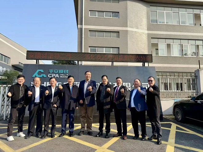 在张维总经理陪同下,调研团一行还走访调研了湖北平安薄膜材料有限公司,平安薄膜主要生产防水卷材用隔离膜和热熔膜,总经理张飞引导一行参观了工厂和工艺,在交流中调研团一行鼓励平安薄膜在做好防水卷材产业链的基础上,开发新领域,探索成为建筑系统解决方案提供商。