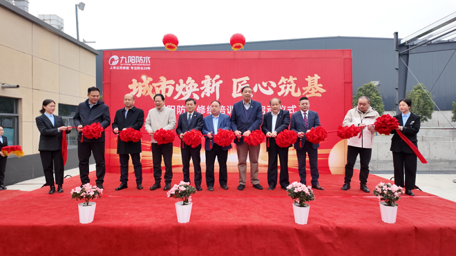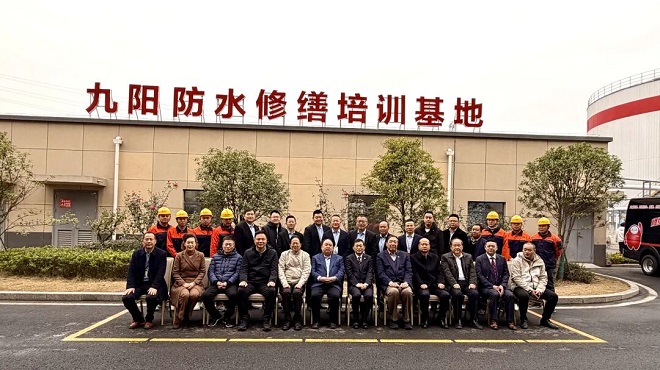 应九阳防水董事长刘启军邀请,中国建筑防水协会会长胡希宝、专家委员会主任委员朱冬青、资深副会长羡永彪、资深副会长瞿培华、副会长徐小波、副会长孙军忠、副会长卫向阳、加拿大多伦多商会会长周凡、荆门科顺新材料有限公司总经理章国政一行到访九阳防水调研交流,共同见证九阳防水修缮培训基地启动仪式,九阳防水董事长刘启军携高管团队热情接待,双方围绕行业高质量发展展开交流座谈。