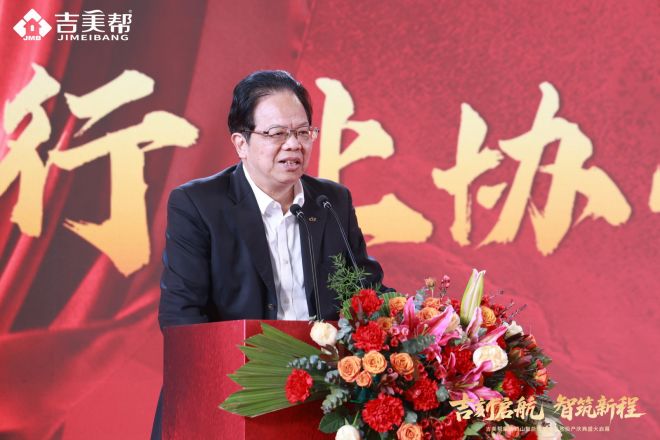 鹤山市委副书记赵磊在致辞中对吉美帮智能化生产基地的落成表示热烈祝贺,并充分肯定道,吉美帮专注于新型绿色环保建筑材料领域,在防水涂料产品研发上持续深耕,并于2024年成功设立“广东省博士工作站”。生产基地自2024年8月摘牌至全面投产,仅用14个月时间,生动诠释了“鹤山速度”,也为本地精细化工产业的升级注入了强劲动能。