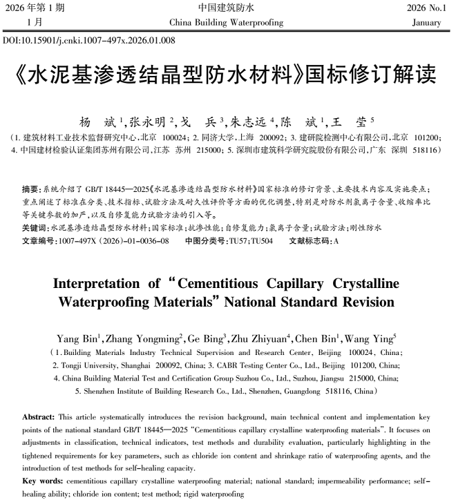 【2026年1月实施】杨斌,等:GB/T 18445—2025《水泥基渗透结晶型防水材料》国标修订解读