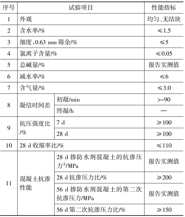表2 水泥基渗透结晶型防水剂性能要求