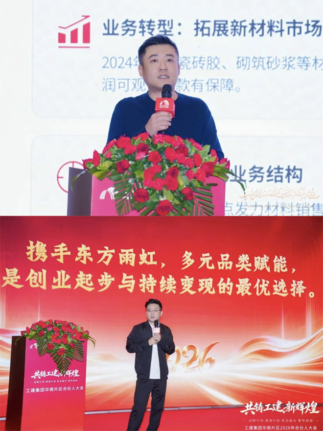 李勇在致辞中强调,华南片区尤其是深圳,始终是东方雨虹发展的战略要地、创新前沿与攻坚先锋。面对行业深度调整与格局重塑,资源正加速向头部品牌集聚,未来竞争将全面聚焦品牌影响力、交付保障力、体系完善度与服务专业度的综合较量。为此,他明确2026年华南片区三大发展主线:筑牢防水主业核心优势,加速向建筑建材系统解决方案服务商战略转型,并从严规范市场秩序,守护行业健康生态。东方雨虹将持续加大资源投入与服务支撑,精准赋能合伙人成长,构建厂商深度融合、利益共享的命运共同体。同时,他向全体合伙人发出倡议:恪守契约精神、坚定长期主义、深耕专业能力、凝聚同心合力,携手在新周期中把握机遇、汇聚势能,实现更高质量突破。