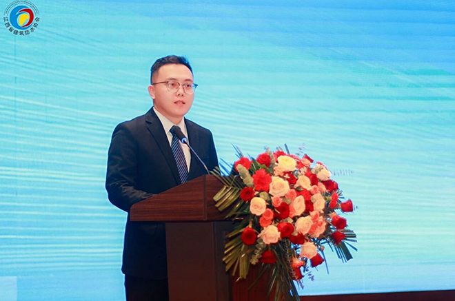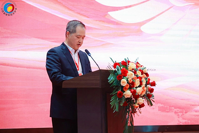 领导致辞环节,江西省住建厅行业综合党委副书记、三级调研员廖能生致辞,祝贺新一届领导班子组建,肯定历届协会在党建引领、政策落实、技术推广等方面取得的工作成效,指出行业既面临转型压力,也迎来发展机遇,希望协会后续从坚守政治引领、强化服务赋能、筑牢安全防线三个方面继续发挥优势,为协会工作和行业发展奠定基础。